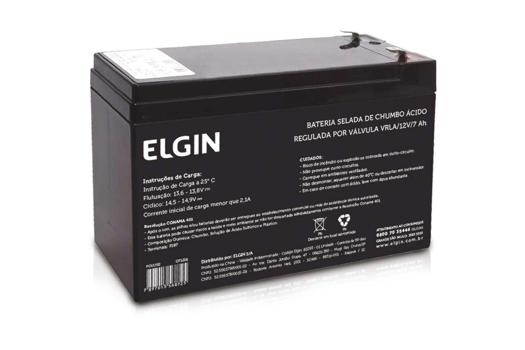 Bateria Chumbo Selada VRLA 12V 7Ah Elgin