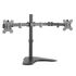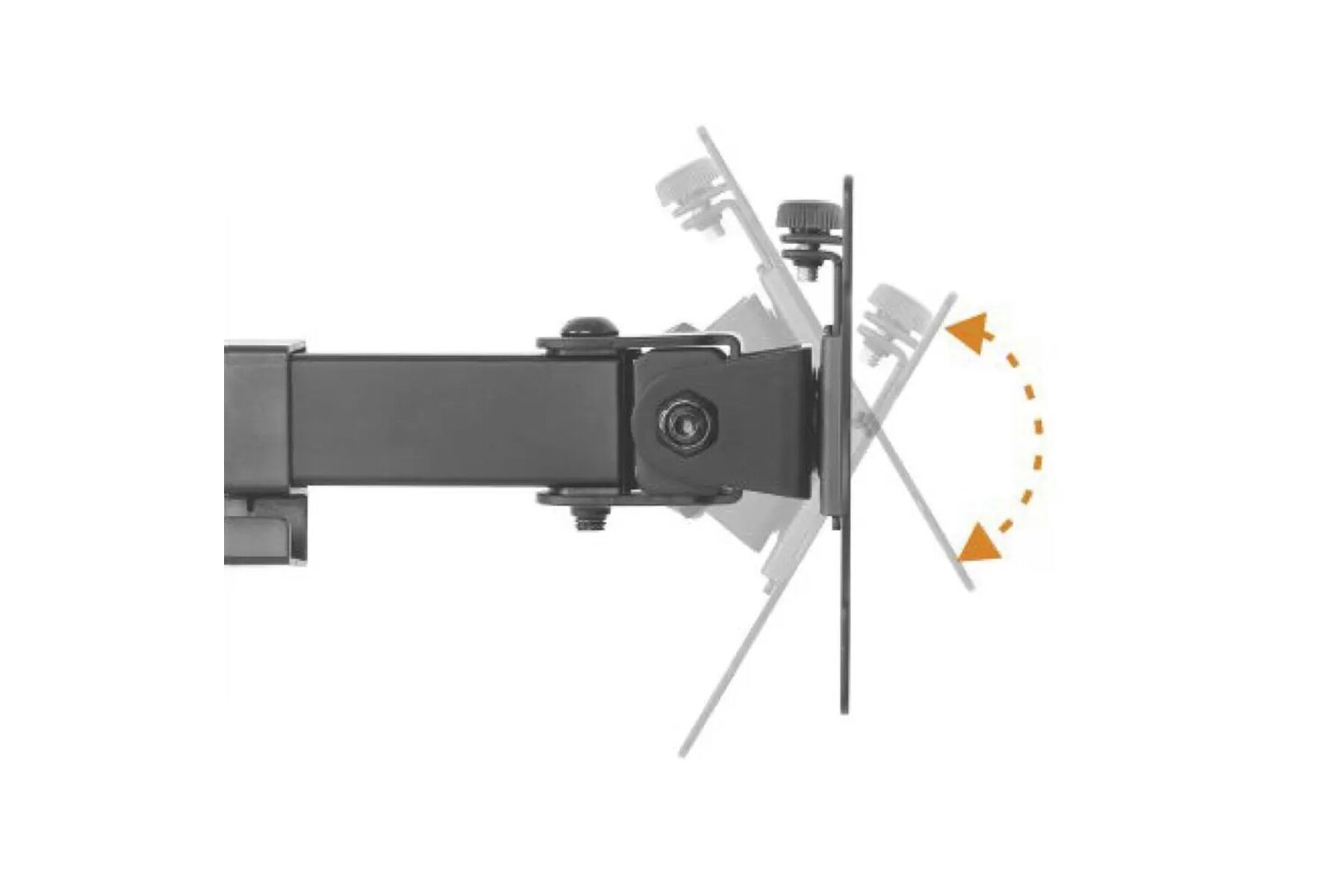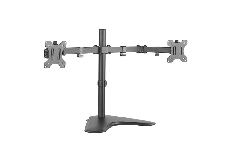 "Indicado para monitores com peso, sem a base original, de até 8 kg (em cada braço) e compatíveis com padrão de fixação VESA (horizontal x vertical) 75x75 ou 100x100 mm, normalmente encontrado em monitores de 17' a 32' polegadas. O suporte de mesa para dois monitores T1224N, pode sustentar até 02 monitores simultaneamente, pois possui duas articulações independentes para fixação na traseira dos monitores, as quais permitem girar lateralmente ou inclinar as telas, para uma melhor visualização e ergonomia, além de possuir ajuste de altura na coluna vertical do suporte.